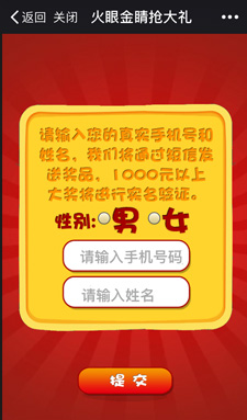 3、营销点:分享好友,通过兑奖码发放奖品;