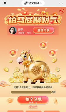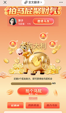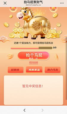 4、用户的拍马屁机会没了后,需要转发好友助力,每3个好友助力可以获得一次拍马屁的机会,会有进度条来显示剩余的次数。